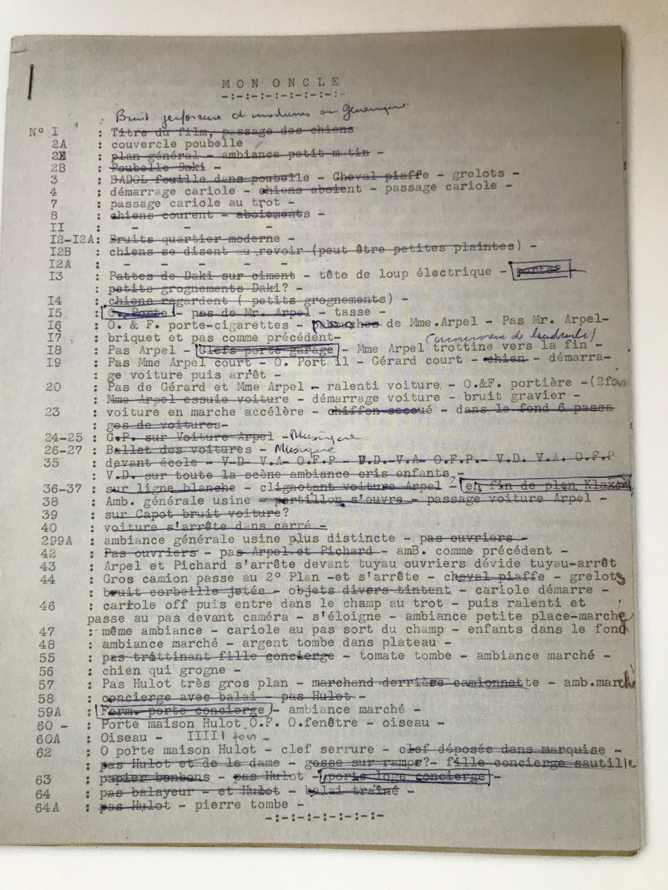 Comment imaginer qu’un être, capable de montrer précisément à chaque figurant comment s’exprimer et capable de construire avec lui le moindre mouvement, puisse laisser au hasard l’interprétation sonore de ses films ? Tati, virtuose de son corps, y travaille lui-même, jouant des objets de bruitage qui, synchronisés, deviennent les interprètes d’un toucher, une façon de tenir un univers.