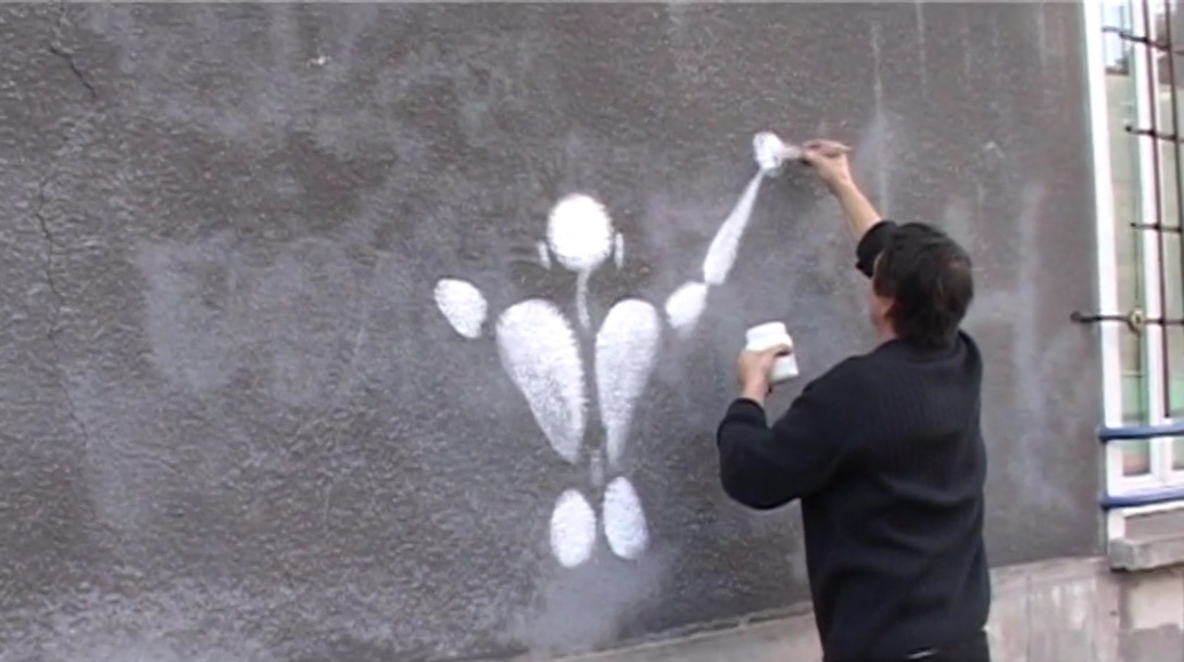 Depuis 25 ans, les corps blancs de Jérôme Mesnager égayent les murs de Paris. Toujours en mouvement, le street artist défie l'espace et le temps comme une suite discontinue de dimensions avec lesquelles il jongle.