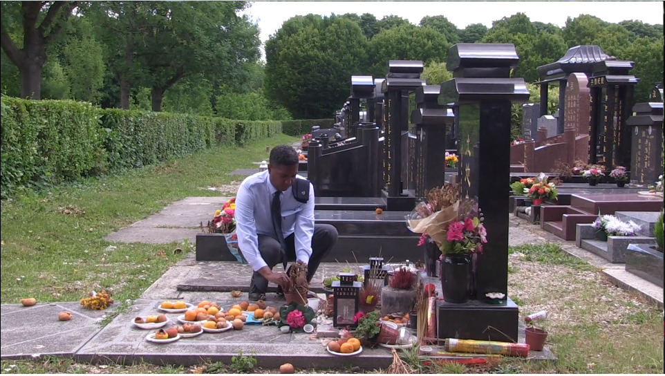 Robert, surveillant dans un cimetière et Fatima, fleuriste dans les pompes funèbres soulagent les vivants. Dans leur métier, tous deux soignent les rapports entre les familles et leurs défunts, donnant ainsi aux morts un surplus d'existence.
