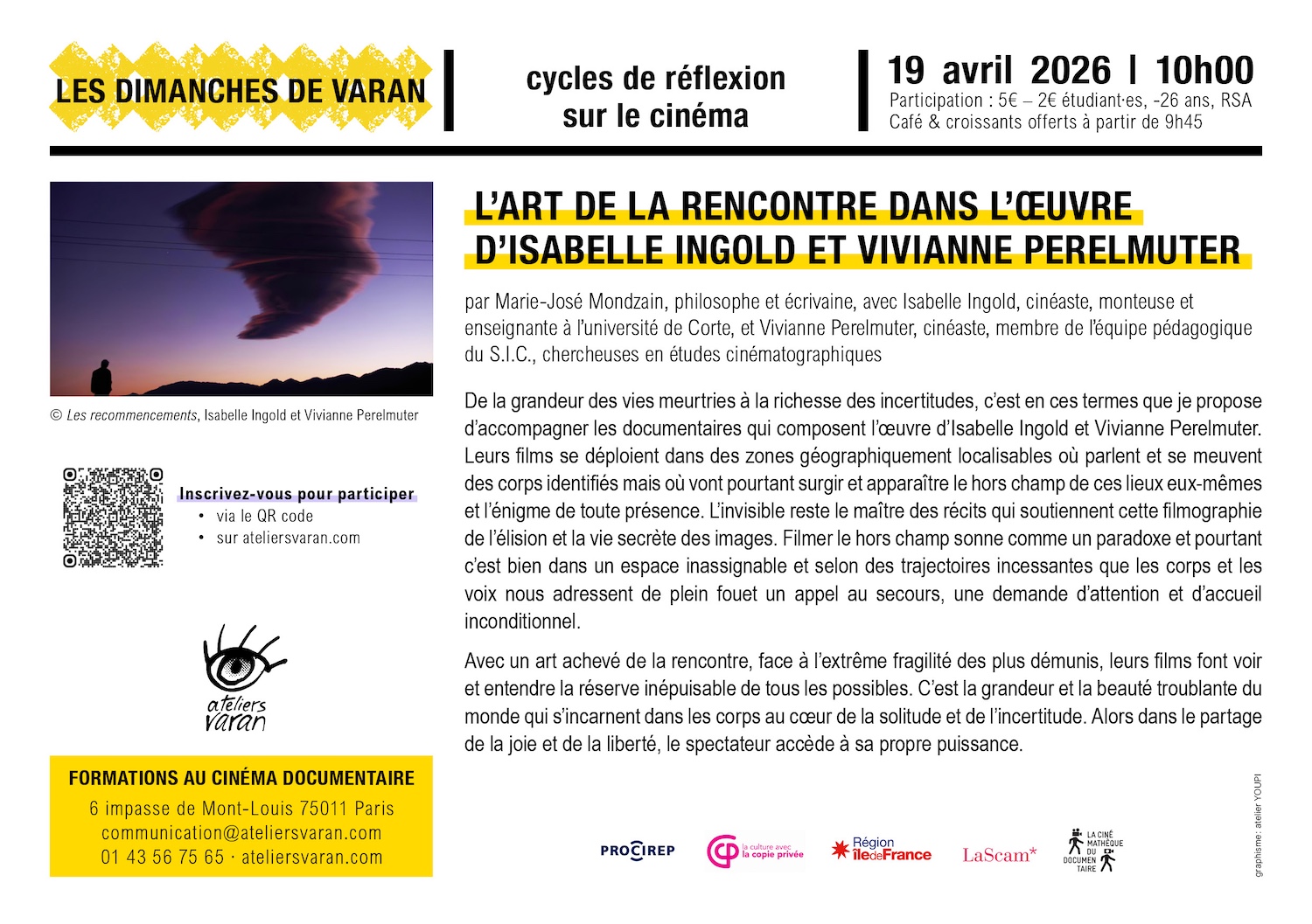 Attention, les événements organisés aux Ateliers Varan sont passés à un système d'inscriptions depuis le 1er février 2026. Pensez à prendre vos billets dès maintenant en suivant le lien ci-dessus. Il restera possible de prendre des places le jour-même sur place, seulement si les inscriptions en ligne ne sont pas complètes.