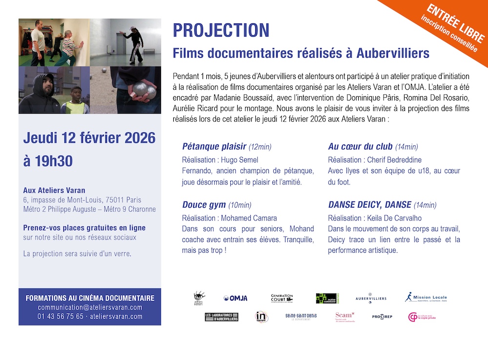 Les Ateliers Varan et l'OMJA ont le plaisir de vous inviter à la projection des films réalisés lors de cet atelier le jeudi 12 février 2026 aux Ateliers Varan (11e) :