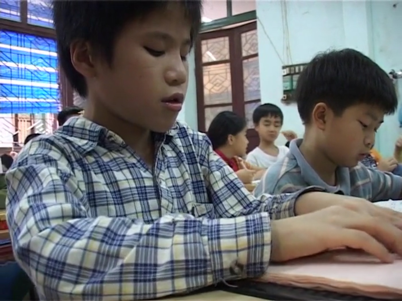 Dans cette école, les enfants malvoyants apprennent à leur manière, de façon adaptée. Ils s'entraident, se guident, et leurs professeurs adaptent leur façon de faire cours. Les enfants peuvent jouer au football, dessiner et attiser leur curiosité à propos des couleurs, des formes… Cette lumière qu'ils recherchent, ils la trouvent en eux.