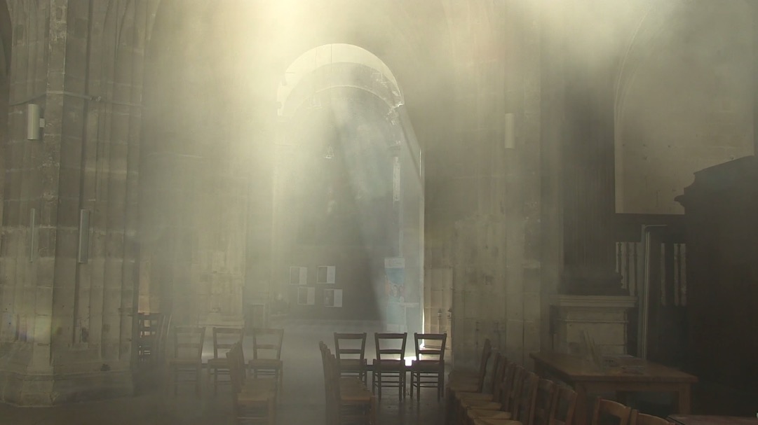 Un microcosme dans un décor d’église gothique. On y rencontre un sacristain berbère, du brouillard, des Chinois, un homme en costume rose, des osties, de la musique étrange, et même du cinéma.